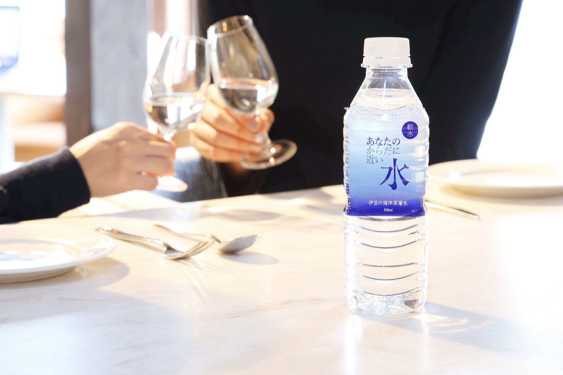 自然から授かった煮みの水は、水深800mの深海から法み上げて、80種類以上のミネラル