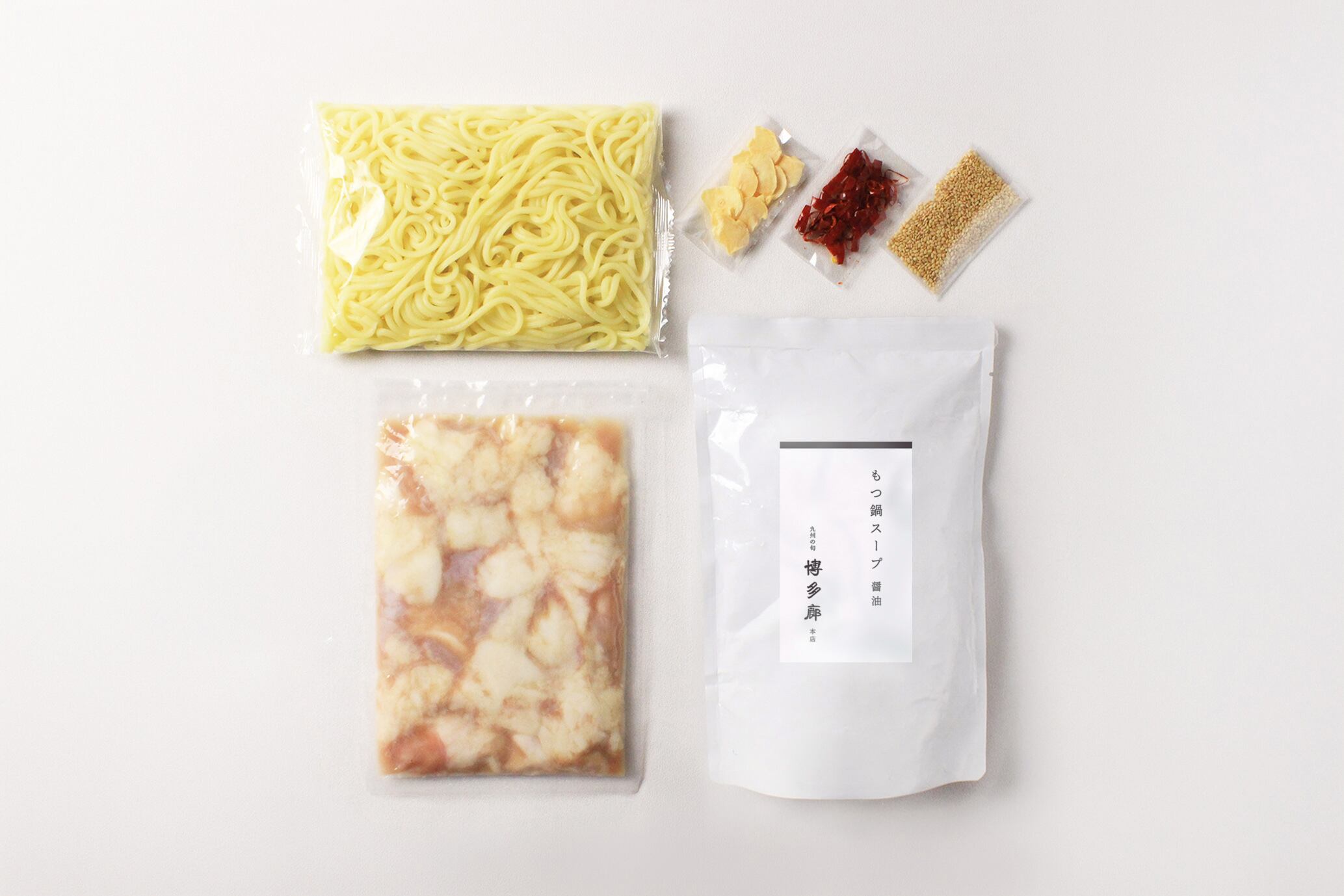 本セットにはスープの旨みを最後の一滴まで楽しめる「特製チャンポン麺」と、味の決め手となる「薬味(ニンニク・鷹の爪・胡麻)」がセットになっています。